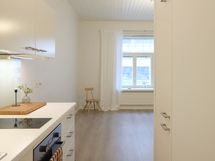 - Säilytystilaa runsaasti korkeassa pystykomerossa ja lukuisissa yläkaapeissa.