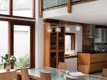 jääkaappi- ja pakastin. Keittiön tasot kiveä, kaapistot tehty käsityönä, Kaya-mahonkia
