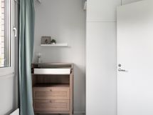 - Pesutilojen varusteet: WC-istuin, suihku, suihkuseinä, pesukoneliitäntä ja lattialämmitys. Erillisten WC:n lukumäärä: 1.