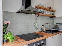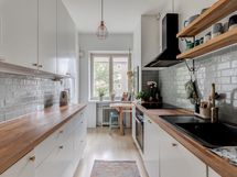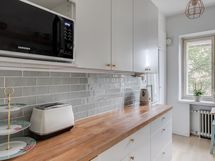 - Varusteet: suihkuseinä, pesukoneliitäntä, WC, suihku, peilikaappi, kylpyhuonekaapistot