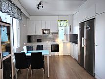 - Keittiön varusteet: Erillinen pakastin, jääkaappi, uuni, liesituuletin ja astianpesukone. Liesi: Keraaminen liesi. Työtason materiaali: Laminaatti.