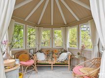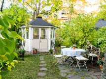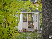 Talon edessä on oma vehreä piha-alue. Pihan kruunaa vuonna 2020 rakennettu viihtyisä huvimaja, joka kutsuu nauttimaan aamukahvista ja kesäillan illallisista – täydellinen paikka viettää aikaa ja nauttia vuoden kaikista hetkistä aina keväästä pitkälle syksyyn.