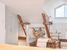 Yläkerta on avara – korotettu huonekorkeus ja katon muoto tuovat tilaan ilmavuutta ja pohjaratkaisu mukautuu helposti perheen tarpeisiin. Yläkerta on myös mahdollista jakaa toimivasti 2-3 huoneeksi väliseinillä. Laadukas kylpyhuone täydentää kokonaisuuden ajattomalla ilmeellään.
