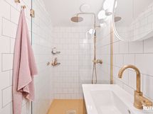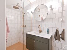 - Pesutilojen kuvaus: Upea kylpyhuone on uusittu vuonna 2020. Varustus: sadesuihku (Tapwell/messinki), suihkuseinä (mittatilaus), seinä-wc, lattialämmitys, allaskaappi, pyöreä peilikaappi, pyyhekuivain. Lattia: laatta. Seinät: kaakeli.