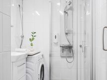 - Wc-istuin, suihku, suihkuseinä, pesukoneliitäntä, peilikaappi, allaslaatikosto