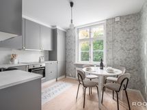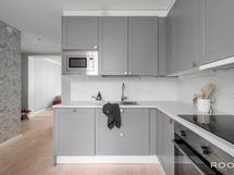 - Keittiön varusteet: Jääkaappipakastin, astianpesukone, mikroaaltouuni, liesituuletin ja erillisuuni. Liesi: Keraaminen liesi.