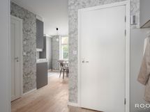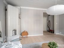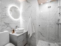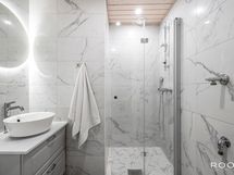 - Pesutilojen varusteet: WC-istuin, suihku, suihkuseinä (kääntyvä), pesukoneliitäntä, lattialämmitys, pesuallas, allaskaappi ja peili.