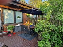 - Huoneiston oma piha-alue on kuin kukkiva puutarha, jossa lukuisia istuksia ja perinnekasveja.