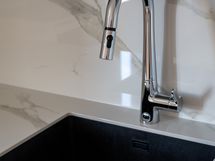 Mielen kodinkoneet, tasokkaat Laattapisteen keraamiset tasot ja välitilat - välitilaatta kattaa koko välitilan.