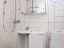 - Suihku, peilikaappi, allaskaappi, kiinteät valaisimet.