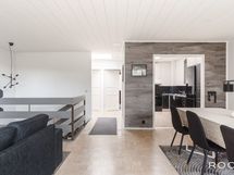 Yläkerrassa sijaitsee avara ja valoisa olohuone, ruokailutila, keittiö sekä kaksi makuuhuonetta. Lasitetulta parvekkeelta avautuu kaunis merinäköala ja merenranta on aivan lähellä. Alakerrassa on kaksi makuuhuonetta, uima-allas, saunaosasto, kylpyhuone, takkahuone ja kodinhoitotila sekä reilusti säilytystilaa. Oma etupiha ja takapihan avoin oleskelualue lisäävät asumisviihtyvyyttä ja lapsilla on tilaa temmeltää. Huoneistolle kuuluu lisäksi oma autokatospaikka ja ulkovarasto.
