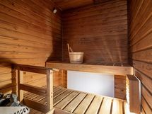- Sauna, sähkökiuas, kylpyhuone, erillinen wc, suihku, peilikaappi, pesukoneliitäntä.