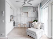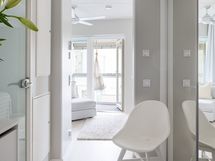 Varustus: Integroidut kodinkoneet, erillisuuni, induktioliesitaso, liesituuletin, astianpesukone, jääkaappi/pakastin.