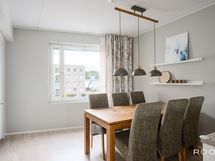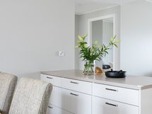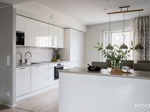 Varustus: Integroidut kodinkoneet, erillisuuni, induktioliesitaso, liesituuletin, mikroaaltouuni, astianpesukone, jääkaappi, pakastekaappi.
