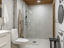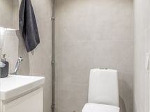 - Pesutilojen kuvaus: Tilavassa kylpyhuoneessa suihku, suihkuseinä, wc-istuin, bideesuihku, käsienpesuallas, peili- ja allaskaappi. Erillisen WC:n kuvaus: WC-istuimen lisäksi bideesuihku, käsienpesuallas sekä peili- ja allaskaappi.