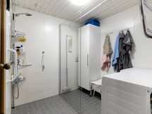 - Pesutilojen varusteet: Suihku, pesukone (kuuluu kauppaan), suihkuseinä, pesukoneliitäntä, rättipatteri, kaappi ja kuivausrumpu (kuuluu kauppaan). Erillisten WC:n lukumäärä: 2. Erillisen WC:n varusteet: WC-istuin, peilikaappi, allaskaappi ja bidee-suihku.