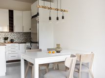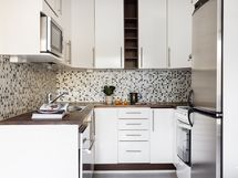 - Liesi: keraaminen. Työtasot: puu. Kylmäsäilytys: jääkaappi/pakastin. Varustus: astianpesukone, kiinteät valaisimet, liesituuletin / suodatin.