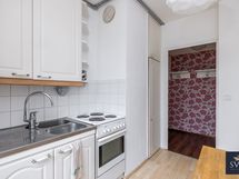 - Keittiön varusteet: Jenkkikaappi ja mikroaaltouuni. Liesi: Sähköliesi. Työtason materiaali: Teräs.
