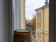 - Upeat näkymät Tähtitorninpuiston suuntaan ja koulun pihalle (etelä) olohuoneen erkkeri-ikkunasta, josta myös hieman merikin pilkottaa idän puolella. Ruokailutilasta näkymät Bernhardinkadun ja Fabianinkadun puolelle. Työhuoneesta näkymät Fabianinkadun puolelle ja makuuhuoneet jää sisäpihan puolelle. Asunto on kulmahuoneisto.