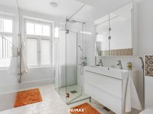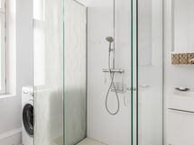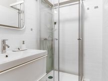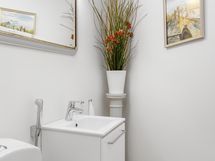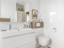 - Pesutilojen varusteet: Lattialämmitys, wc-istuin, suihku, suihkukaappi, suihkuseinä, peilikaappi, allaskaappi, bidee-suihku, pesuallas, pyyhekuivain ja pesukoneliitäntä. Pesutilojen kuvaus: Asunnossa on kaksi kylpyhuonetta ja yksi erillinen wc. Suuremman kylpyhuoneen yhteydessä lattialämmitys ja paikka pyykinpesukoneelle/tornille on myös lattialämmitys sekä avattava ikkuna. Erillisten WC:n lukumäärä: 1. Erillisen WC:n varusteet: WC-istuin, pesuallas, bidee-suihku, peili ja allaskaappi.