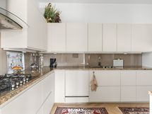 - Keittiön varusteet: Jääkaappi, astianpesukone, liesi, liesituuletin, erillinen pakastin ja erillisuuni. Liesi: Kaasuliesi. Työtason materiaali: Graniittikivi. Erillinen keittiö, josta yhteys ruokailutilaan (mahdollisuus purkaa kevytrakenteinen seinä, jolloin keittiö ja rt yhdistyvät yhdeksi suureksi tilaksi).