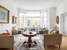 Asunnon olohuoneen erkkeri-ikkunasta avautuvat upeat näkymät Tähtitorninpuiston -ja Norsenin koulupihan suuntaan. Olohuoneesta löytyy myös toimiva kaunis tulisija. Erillinen ruokailutila ja keittiö ovat omiaan myös vieraiden kestittämistä varten. Keittiössä laadukkaat kivitasot ja kaasuliesi sekä sopivasti laskutilaa kokkailua varten. Asunnossa on nykyisellään 2 tilavampaa makuuhuonetta, joista molemmat sijoittuvat rauhallisen sisäpihan puolelle, tarjoten rauhaa ja yksityisyyttä. Erillinen työhuone, joka tarvittaessa muunneltavissa kolmanneksi makuuhuoneeksi. Kylpyhuoneita on kaksi ja löytyy myös erillinen wc.