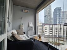Tervetuloa tutustumaan tähän upeaan, laadukkaasti viimeisteltyyn ja valoisaan ylimmän asuinkerroksen kaksioon, jossa kaikki on mietitty tarkasti loppuun asti. Asunnossa yhdistyvät moderni tyyli, erinomainen pohjaratkaisu ja poikkeuksellisen alhainen vastike.