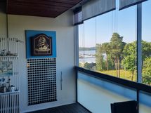 - Merinäköala olohuoneesta Kulosaaren suuntaan ja laajasti merelle Tullisaareen ja Suomenlinnan suuntaan. Horisontissa kauempana kauppakeskus Redi, korkeat tornitalot ja Kallion kirkon torni. Yläkerran isolta parvelta näkyvät Linnanmäen laitteet ja makuuhuoneista tenniskentät ja urheilupuisto, jossa tekonurmikenttä. Tunnelma maalla, merellä ja ilmassa, Itäväylän liikenne, metro ja lentokoneitakin, eivät aiheuta kuitenkaan melua.