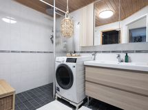 - Pesutilojen kuvaus: bide suihku. Varustus: suihkuseinä, pesukoneliitäntä, wc-istuin, suihku, peilikaappi, kiinteät valaisimet, kylpyhuonekaapisto.