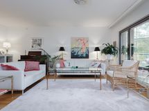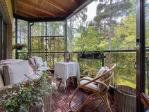 - Metsäpuistonäkymät olohuoneesta ja parvekkeelta, keittiön ja makuuhuoneiden ikkunasta pilkottaa meri.