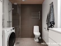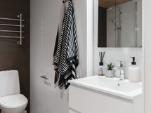 - Pesutilojen varusteet: WC-istuin, suihku, lattialämmitys, peilikaappi ja allaskaappi.