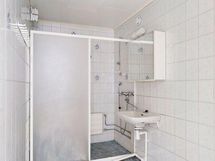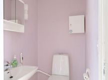 - Kylpyhuoneessa suihku ja -seinä, kiinteät valaisimet, peilikaappi ja pesukoneliitäntä. Erillinen wc: peilikaappi, lääkekaappi, kiinteät valaisimet, wc-istuin, käsisuihku, muovimatto ja seinät maalattu.