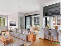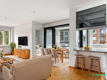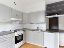 - Kaapistot, kiinteät valaisimet, jääkaappi/pakastin (uusi pakastin mutta on rikki ja ovi irti), sähköliesi, liesituuletin ja astianpesukone (ei toimi).