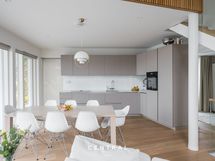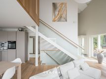 A unique, move-in-ready detached home in the prestigious Kulosaari area – a true design gem where light, space, and elegance meet. The breathtaking living room features over six-meter-high ceilings and expansive windows that fill the space with natural light.