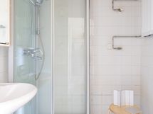 Varustus: suihku, suihkukaappi, lavuaari, peilikaappi
