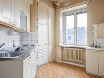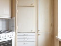 - Vaaleasävyinen keittiö uusittu arviolta 90-luvulla. Keittiön pohja mahdollistaa erilaisen ja persoonallisen toteutuksen. Keittiössä erillinen komero.