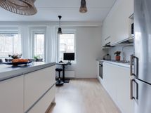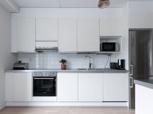 - Liesi: keraaminen. Työtasot: laminaatti. Kylmäsäilytys: jääkaappi/pakastin. Varustus: liesikupu, astianpesukone.