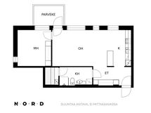 - yhtiöjärjestyksen mukainen, isännöitsijäntodistuksen mukainen Pinta-alaa ei ole tarkistusmitattu, joten se voi olla ilmoitettua suurempi tai pienempi