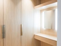 - Lisätietoja säilytystiloista: Makuuhuoneen yhteydessä on upea walk-in-closet, jonka kauniit tammiviilukalusteet (tammiviilu, puuöljy Rubio monocoat sävy Cocoa) lisäävät tilan lämpöä ja viihtyisyyttä.