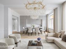 - Kalustepuusepän tekemä täyskorkea elegantti vaaleanharmaa yhdelle seinälle asennettu keittiö Joseph Giles messinkivetimin. Työtasot ja välitilalevy luonnonkiveä (kvartsi), tiskiallas ja hana messinginsävyistä ruostumatonta terästä, Tapwell. Siemens 80 cm leveä induktioliesitaso, Siemens integroitu täyskorkeat jääkaappi ja pakastin, integroitu liesituuletin sekä hydrolyysiuuni. Keittiössä on myös erillinen aamiaiskaappi.