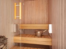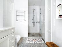 - Kph1: Sadesuihku, suihkuseinä, wc-istuin, allaskaappi, peilikaappi, pyyhekuivain, lattialämmitys. Kph2: Kylpyamme, sadesuihku, allaskaappi, wc-istuin, lattialämmitys, sauna.