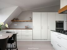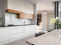 - Kaapistot, uudet täyskorkeat Gaggenaun jääkaappi sekä pakastin, keraaminen liesi, kaasuliesi (kaksi poltinta, kaupunkikaasu), erillisuuni (integroitu), mikroaaltouuni (intgroitu), liesituuletin hormiin, astianpesukone (integroitu), kiinteät valaisimet. Lattia: leveä lankkulattia, seinät maalattu