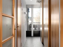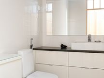 - Pesutilojen kuvaus: Huoneiston saunaosastossa on suihku, kylpyamme, kaapisto, pesuallas, käynti suoraan terassille, lattialämmitys (taloyhtiö laittaa lämmityksen päälle ja pois toiveen mukaisesti). Lattia: laatta. Seinät: laatoitettu. . Erillisen WC:n kuvaus: Huoneistossa on kaksi tilavaa, erillistä wc:tä, joista toisessa on myös suihku suihkuseinällä. Molemmissa pesualtaat, peilit ja allaskaapit/kaappi, kiinteät valaisimet. .