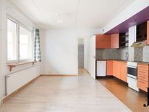 Tämä iso 36 m2 yksiö tarjoaa toimivan pohjaratkaisun avokeittiöllä / olohuoneella, makuuhuoneella sekä kylpyhuoneella ja erillisellä wc:llä. Lattiamateriaalit ovat parkettia oleskelutiloissa ja laattaa märkätiloissa. Kylpyhuone on juuri remontotu.