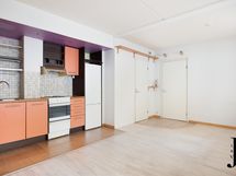 Varusteet: Jääkaappi, Varattu paikka astianpesukoneelle, Pakastin, Astianpesukoneliitäntä. Työtaso: Puutaso. avokeittiö