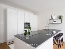 - Keittiön varusteet: Jääkaappi, erillinen pakastin, erillisuuni, liesi, liesituuletin, astianpesukone ja keittiösaareke. Liesi: Induktioliesi. Tyylikäs ja tilava vuonna 2019 kauttaaltaan uusittu erillinen keittiö. Koko saarekkeen kokoinen yhtenäinen kivitaso, jonka toisella pituuspuolella jätetty istuintilaa noin 3:lle baarituolille. Induktioliesi integroidulla liesituulettimella. Monitoimiuunissa kaikki toiminnot (täysi höyrytoiminto, grilli, valmistusreseptit ja ruoan valmistusautomatiikka). Integroitu mikroaaltouuni, astianpesukone, jääkaappi ja pesukone. Keittiöstä kulku pihan puoleiseen portaikkoon, jossa hissi sekä kulku parvekkeelle.