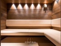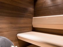- Kiuas: Sähkökiuas. Tilava, tunnelmallinen sauna ainavalmiilla Helon Saunatonttu- kiukaalla. Sisustus on TAIVE-saunapaneelia.