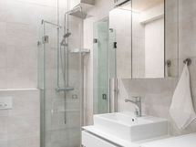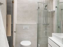 - Pesutilojen varusteet: Pesukoneliitäntä. Pesutilojen kuvaus: Tyylikkäästi kauttaaltaan v. 2019 uusittu ja laatoitettu kylpyhuone. Kalusteet Villeroy & Boch. Suihku, jossa taitettava lasiseinä, allaskaluste, peilikaappi. Seinä wc. Kaunis valaistus ja rauhallinen värimaailma. Lattialämmitys. Erillisten WC:n lukumäärä: 1. Erillisen WC:n kuvaus: Eteisen yhteydessä vieras WC.