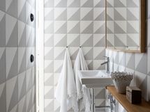 ja käyttää seinävesilukkoa (Hansgrohe Flowstar S Design vesilukko seinään_kromi_52105000) molemmissa wc-tiloissa. Suihkutilaan tulee Unidrain Highline Custom 900 tai 1000, Kansi Jura Grey Blue