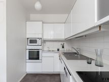 - Keittiön varusteet: Jääkaappi, jääkaappipakastin, erillisuuni, liesi, liesituuletin, mikroaaltouuni ja astianpesukone. Liesi: Induktioliesi. Kaapisto, Jääkaappipakastin, erillisuuni, induktio liesitaso, suodattimellinen liesituuletin, mikroaaltouuni sekä astianpesukone.